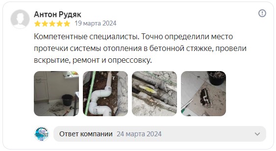 Минимальная стоимость поиска и устранения протечки в квартире от 4 000 руб., в коттедже от8 000 руб., в здание от12 000 руб. Точную стоимость определяет мастер на месте после проведения осмотра и диагностики. Именно поэтому выезд мастера бесплатный.